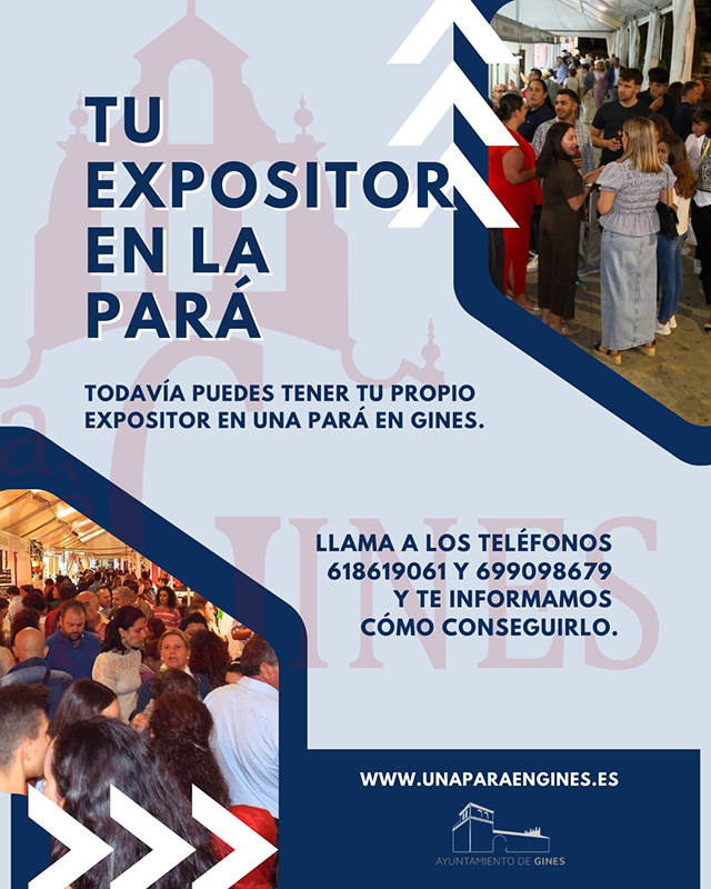 Ahora tu empresa o negocio puede tener su propio expositor en Una Pará en Gines, uno de los grandes eventos del año en toda Andalucía, que el pasado año superó las 75.000 visitas recibidas.